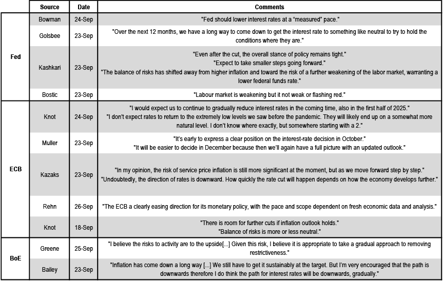 Selected comments from Fed, ECB and BoE Board Members;