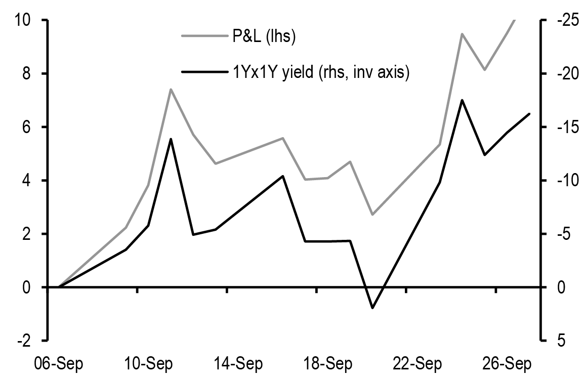• Japan: Former Secretary-General Ishiba won the LDP leadership election. As the market priced in a Takaichi win scenario, we expect yields to reprice higher and curves to flatten in coming days. Keep 2s/10s JGB curve flatteners.