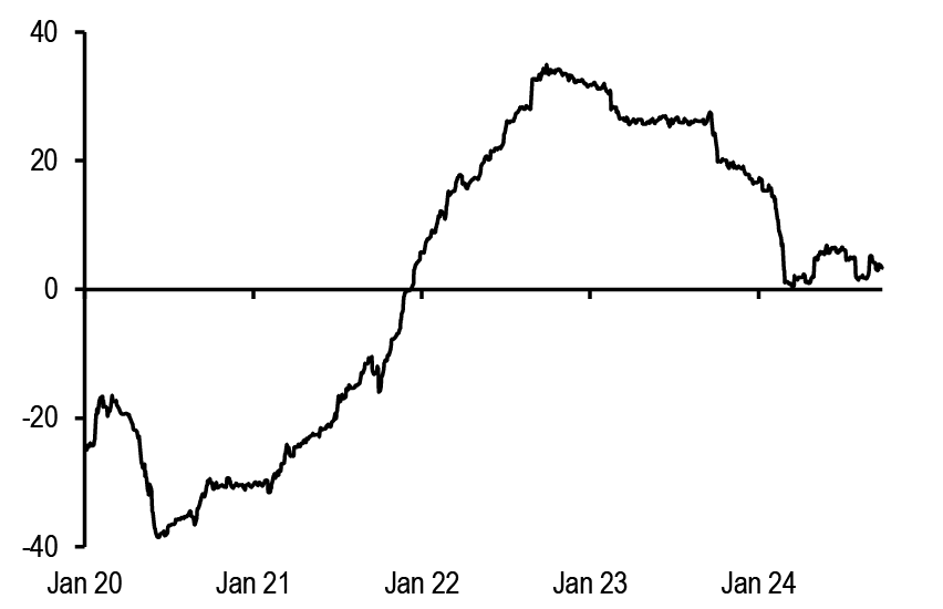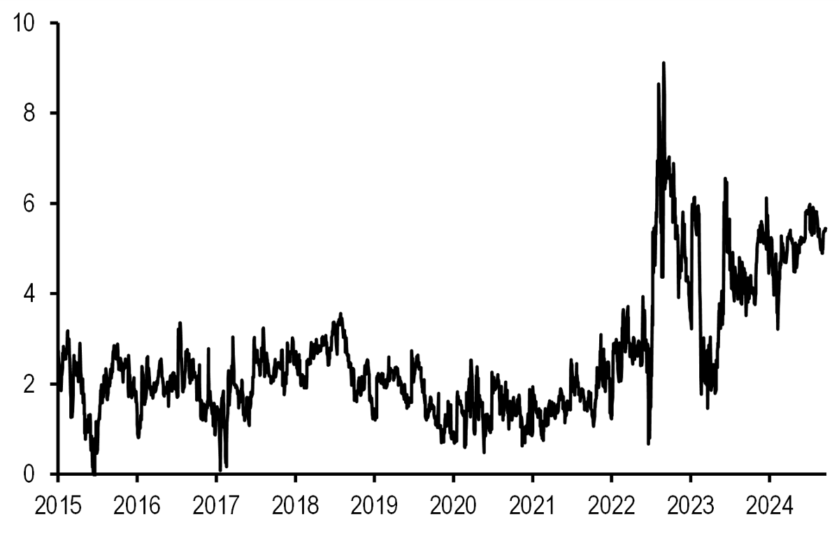 Overall, relative to our call, markets are pricing in less cuts for Fed by end-2024, around the same amount for ECB and more cuts for the other central banks ( Figure 5). In Japan, markets continue to be reluctant to price in more hikes for the BoJ, while we are still calling for a December hike.