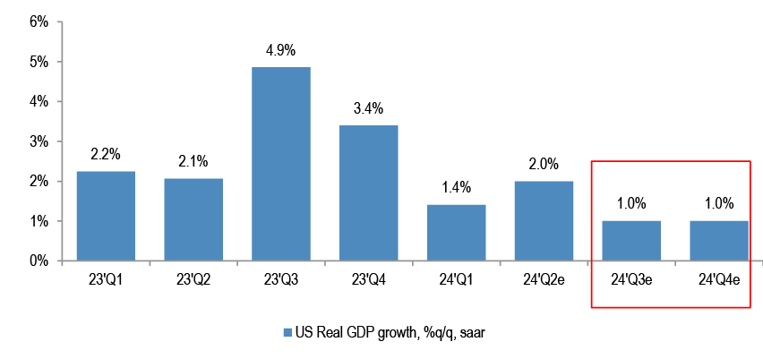 Even if Fed starts cutting in November, as JPM expects, we expect interest rates will remain well above the neutral rate, i.e. monetary policy could remain restrictive for the foreseeable future.