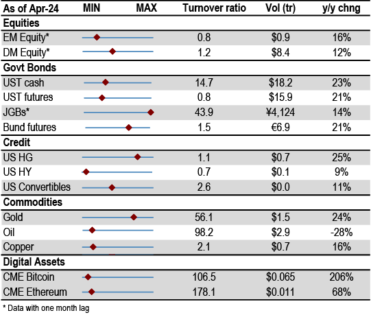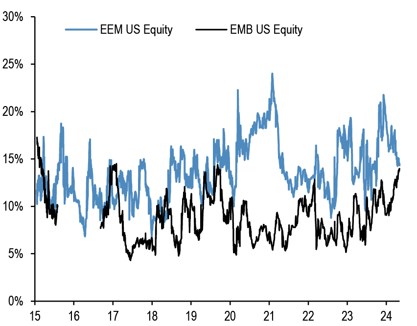 Chart A11a: Cross Asset Volatility Monitor 3m ATM Implied Volatility (1y history) as of 7th May-2024